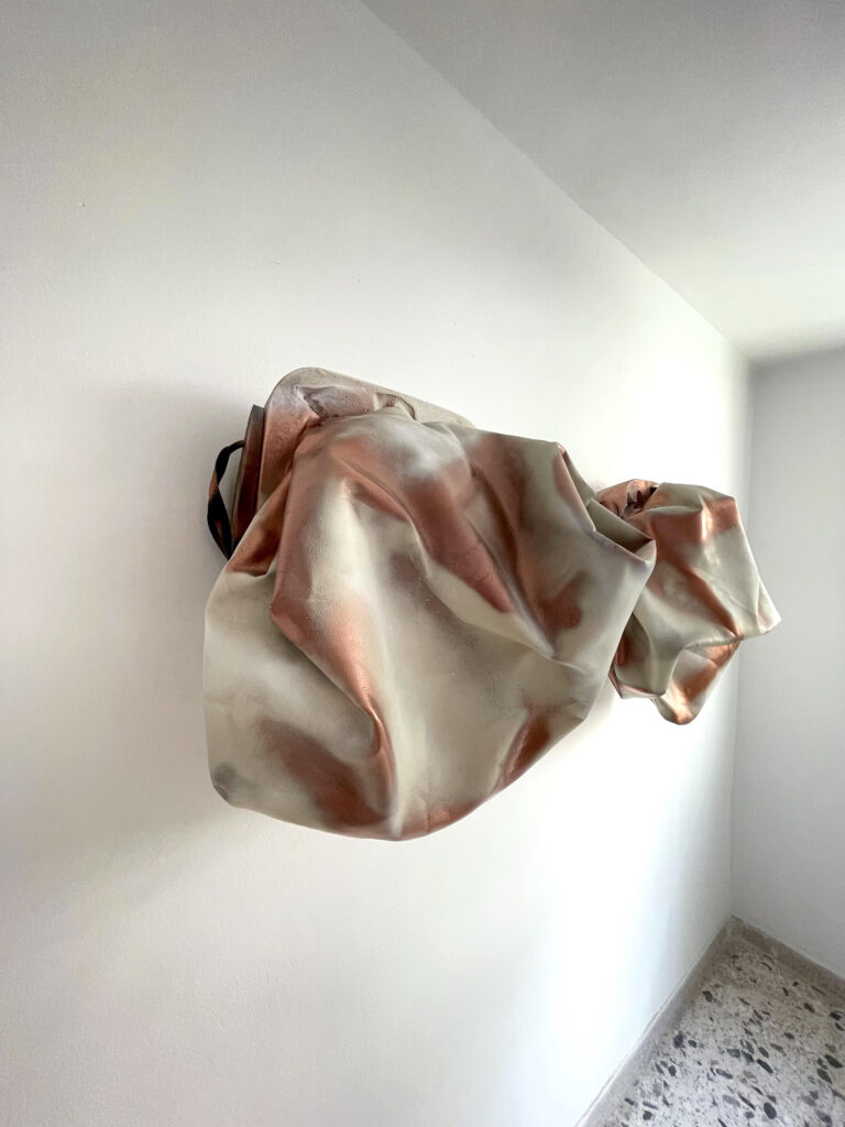 Synthetic Cubism I & II, 2025, plaster, rubberised fabric, flip flops, spray paint